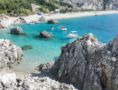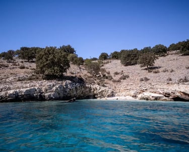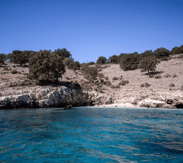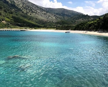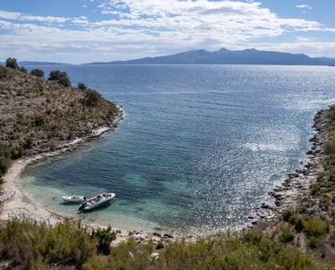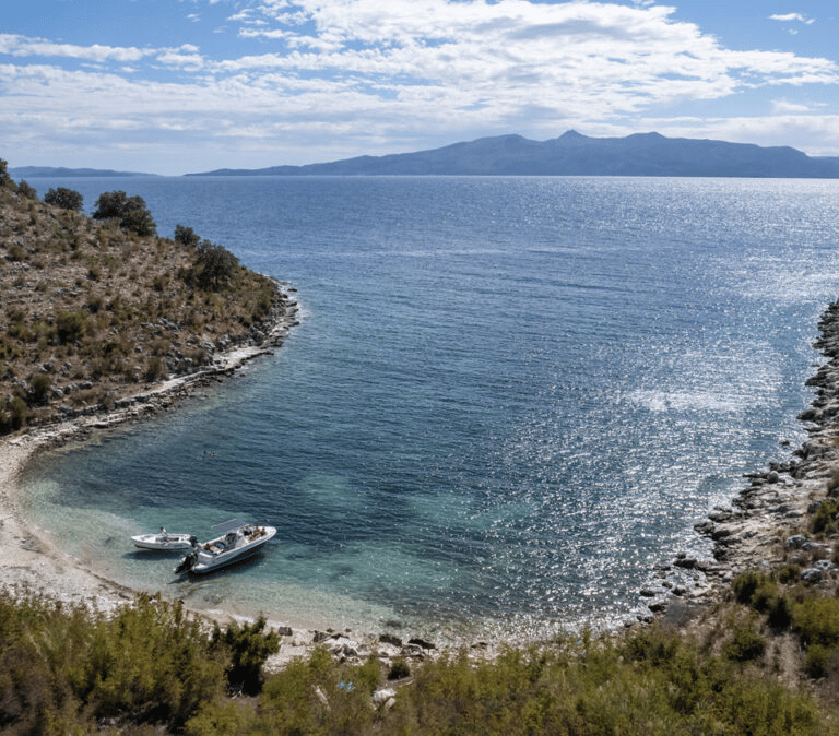 Gremina Bay is a small, quiet bay on the Albanian Riviera known for its clear blue water and natural rocky surroundings. It is a peaceful spot, perfect for swimming and enjoying the untouched coastal landscape.