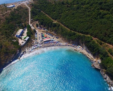 Kakome is a beautiful hidden beach on the Albanian Riviera, known for its crystal-clear turquoise water and untouched natural surroundings. It is a peaceful place away from crowded tourist beaches.